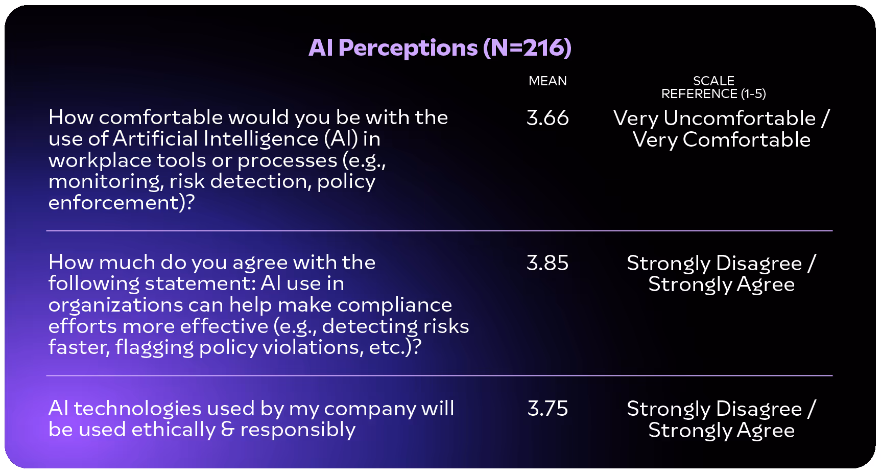- Gauge employee attitudes towards the use of AI in compliance